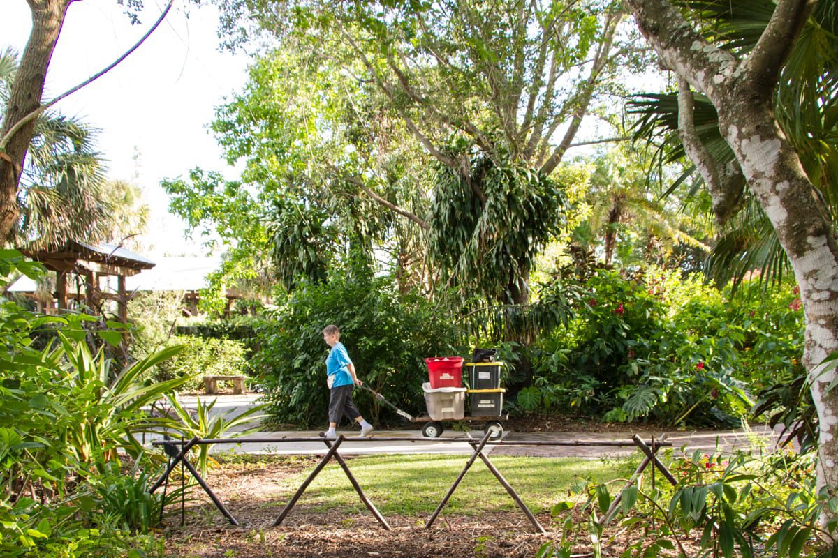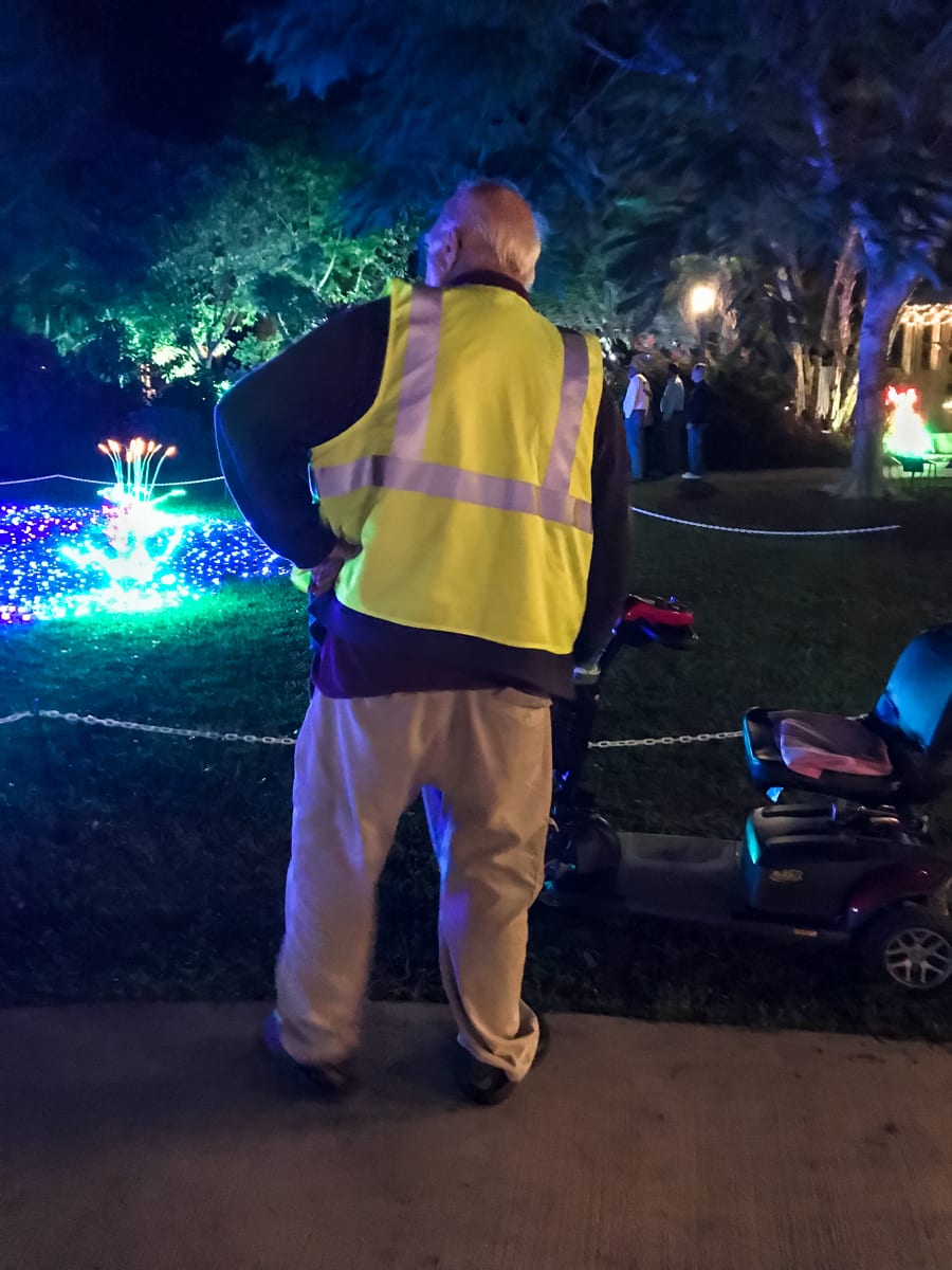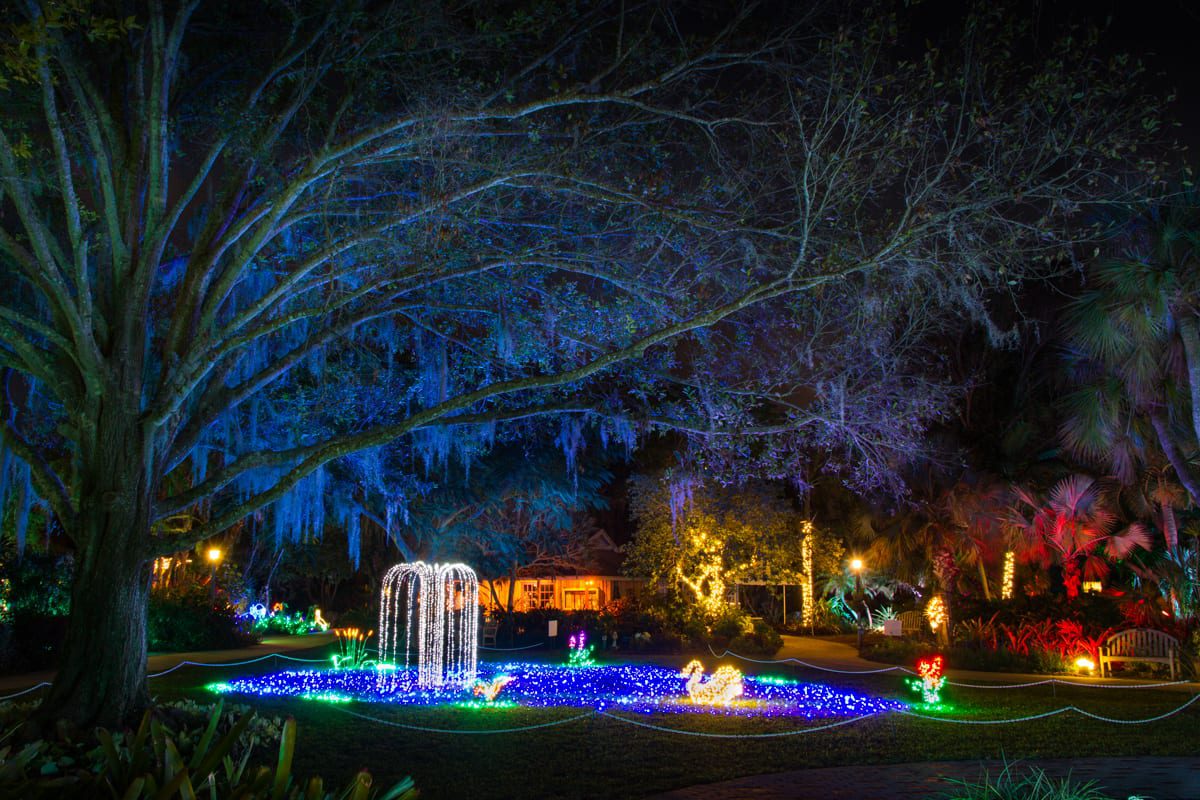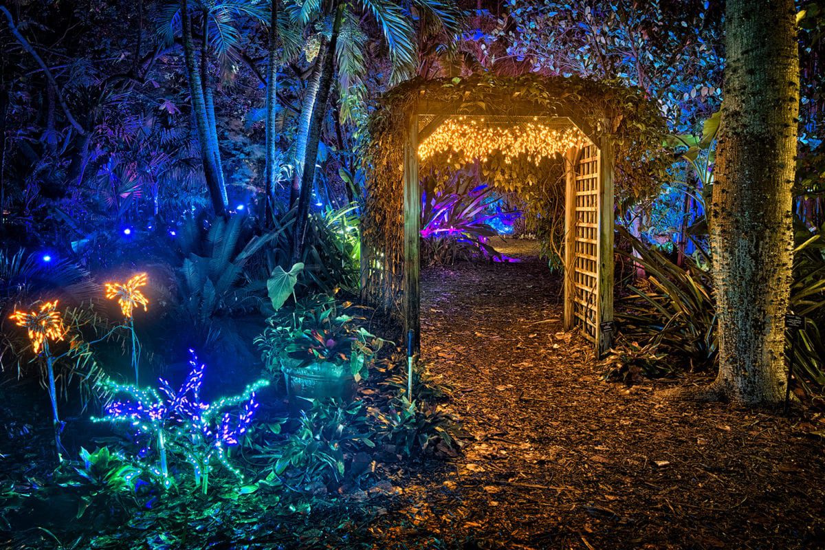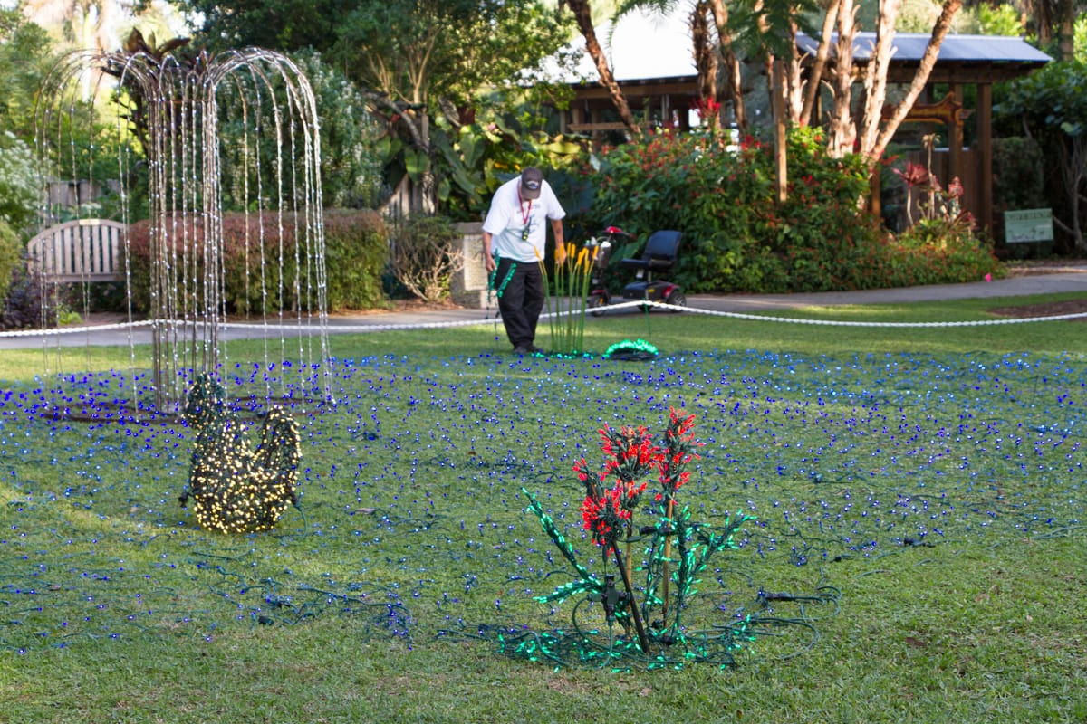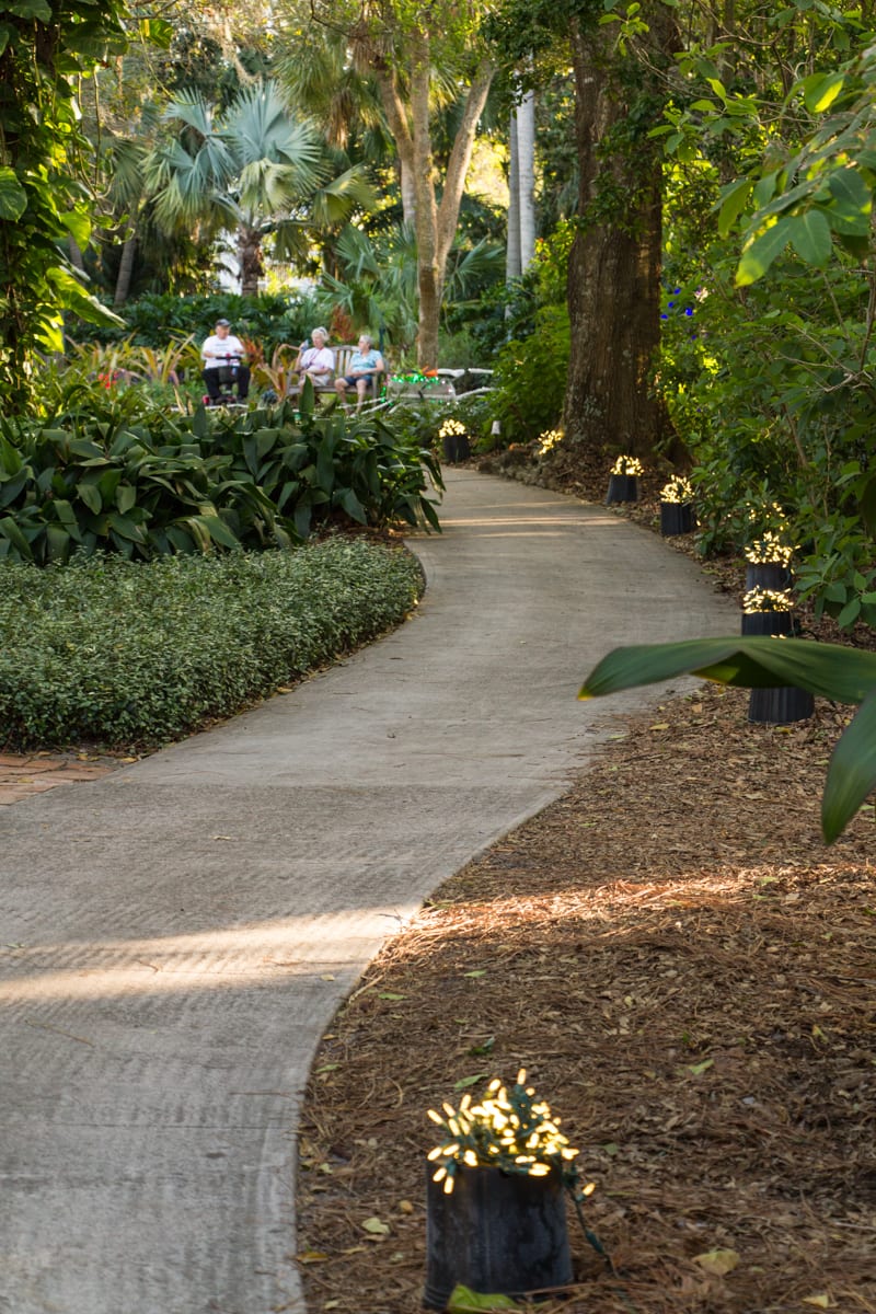New additions to the displays and garden vignettes were magical:  Monkey in the Jungle Trail,  the Blue Crab in the Reef Garden, the “Gator in the Pond, ” the gorgeous new décor at Heathcote House and the Pioneer House created by the Garden Club of Fort Pierce and the celestial lighting in the Tropical Rainforest was ­­­­spectacular!